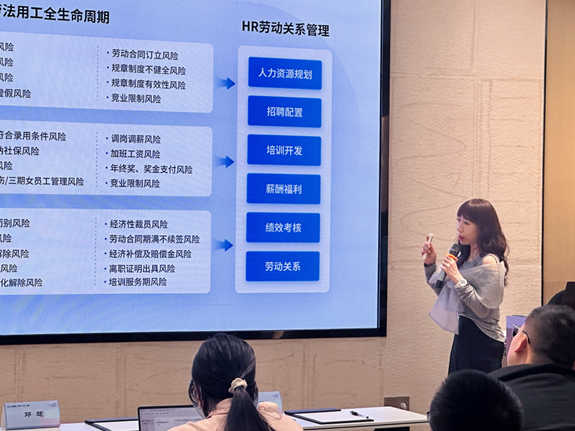 云生集团陕西及宁夏公司总经理,劳法LAOFA首席咨询官龚霞在《未来企业管理和用工合规数智化平台:LAOFA劳法》的分享中,首先介绍了云生集团一站式HR劳动关系合规运营AI创新平台“LAOFA劳法”。在产品上,“LAOFA劳法”主要包括劳法数据库、智能工具包和劳法研究院。然而最值得一提的是,由云生集团自主研发的劳法机器人“小法”,通过AI技术的运用可为企业提供智能服务,如在检索服务上,企业输入想查询的关键词,劳法机器人可自动识别并快速、精准地展示搜索结果。