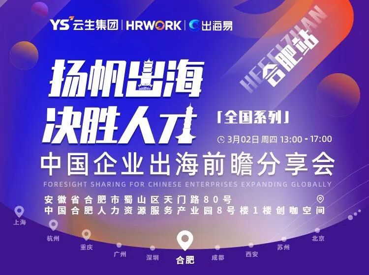 进入春暖花开的三月,出海易Chuhaiyi 2023中国企业出海前瞻全国系列分享会首先来到中国长三角城市群副中心城市——合肥,邀请到云生集团海外业务总监汪鸿雁、安徽昊华律师事务所专职律师李乾、安永中国税务部人力资本经理俞颂翊以及安徽省“启明星”就业指导专家孙自婷出席活动,分享他们精彩的主题演讲。