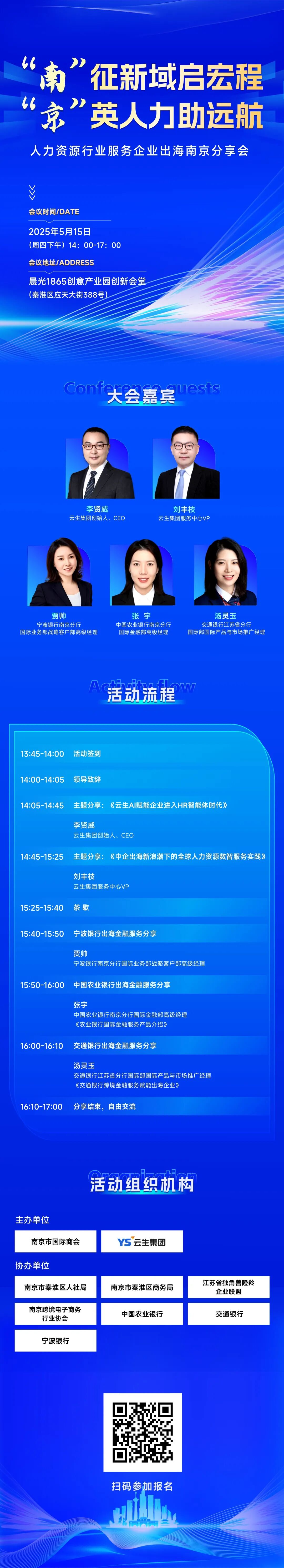 5.15扬帆出海:人力资源行业服务企业出海南京分享会火热报名中!