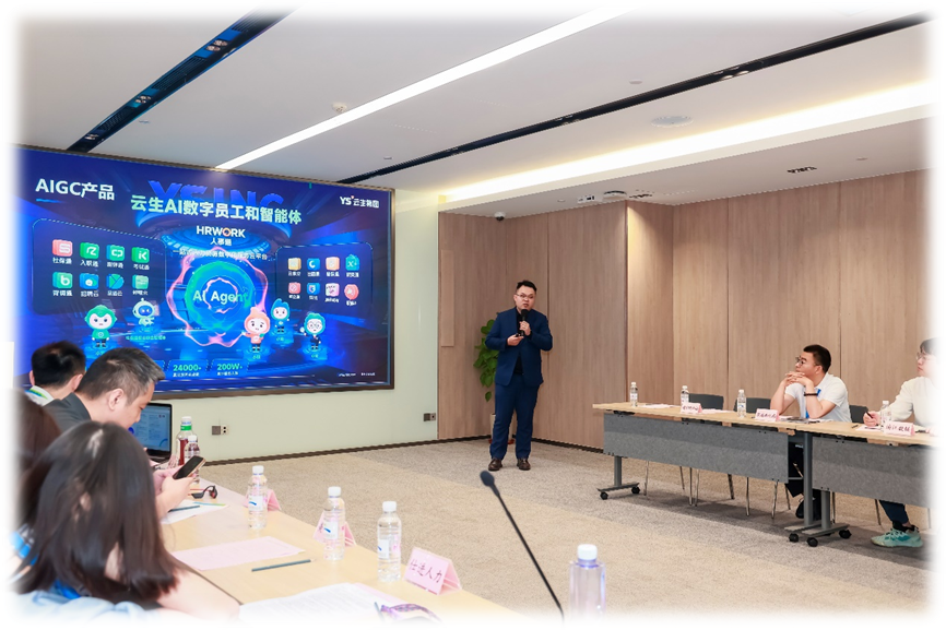 由静安区人力资源和社会保障局主办的“科技赋能・HR破题”人力资源服务企业对接洽谈会同期举办,云生集团代表孙文俊也向在场来宾展示了云生AI创新成果,分享了云生集团人力资源服务成功案例。