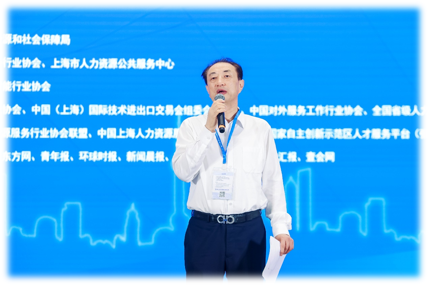 本次研讨会由上海市人力资源和社会保障局指导,上海人才服务行业协会、上海市人力资源公共服务中心主办,上海市人工智能行业协会协办,中国人才交流协会、中国(上海)国际技术进出口交易会组委会执行办、中国对外服务工作行业协会、全国省级人力资源(人才)服务行业协会联席会、北京人力资源服务行业协会、长三角人力资源服务行业协会联盟、中国上海人力资源服务产业园、上海张江国家自主创新示范区人才服务平台(张江闸北园)支持。二级巡视员、上海市人社局人力资源市场管理处处长林华为大会致辞。上海人才服务行业协会秘书长朱庆阳主持大会。