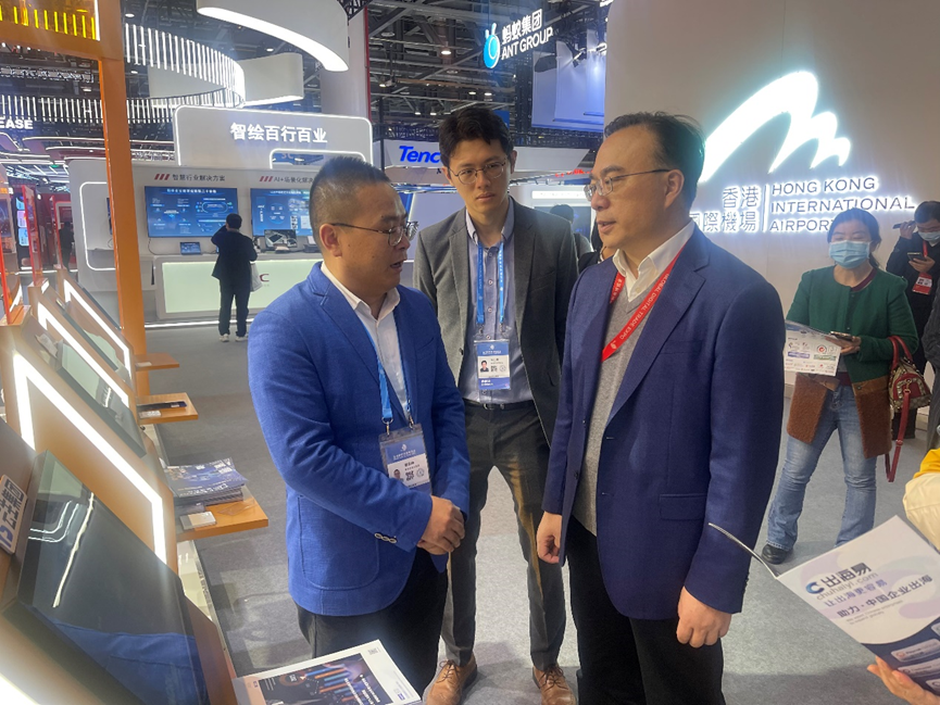 ,上海市商务委员会主任、党组书记朱民,杭州市科技局党组成员、副局长楼立群,HKSTP香港科技园公司业务发展总监简依雯等领导莅临云生集团展位参观交流、指导工作。云生集团公共事业部总监李剑、云生集团浙江公司总经理卢永强热情接待。