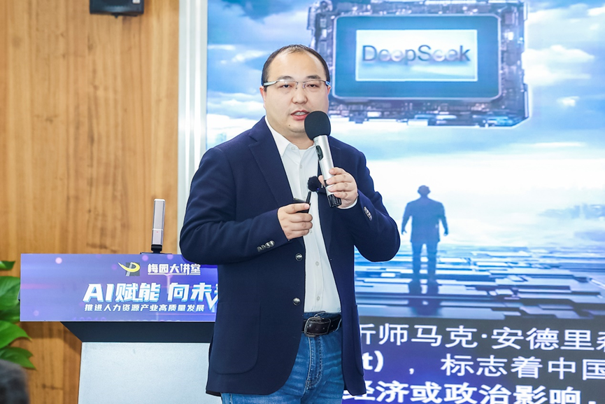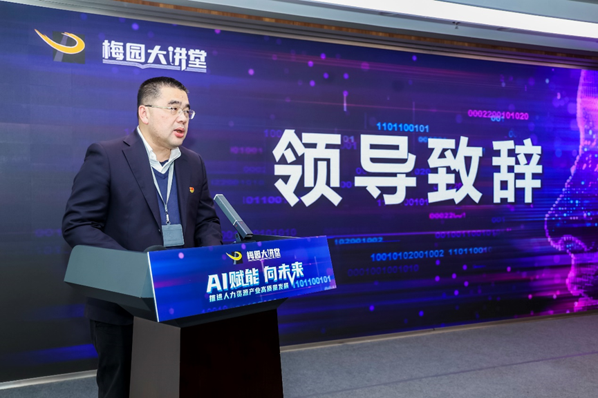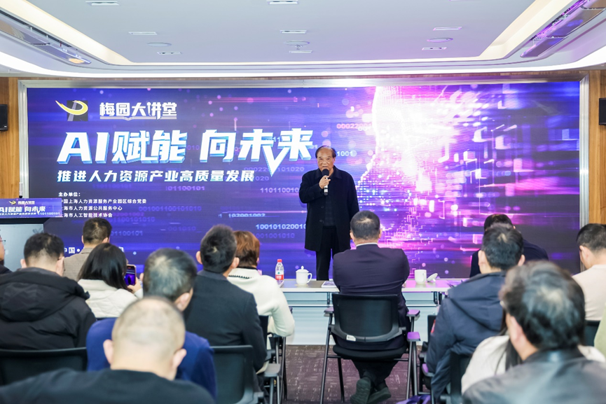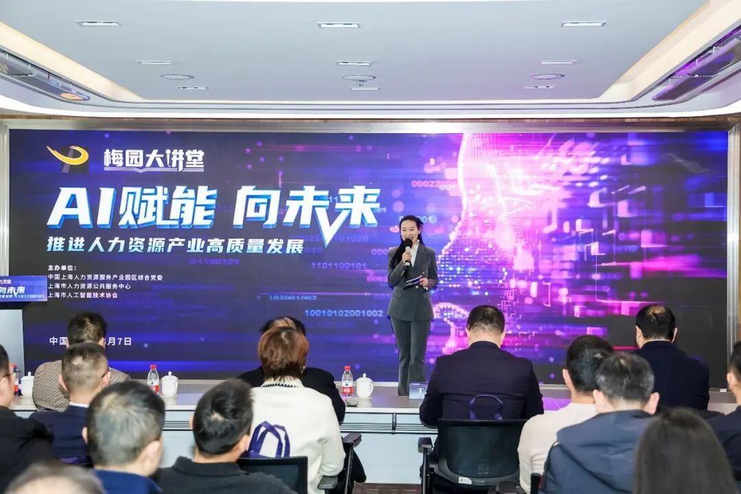 3月7日,主题为“AI赋能 向未来 推进人力资源产业高质量发展”的梅园大讲堂活动在上海人才大厦成功举办。本次论坛由中共中国上海人力资源服务产业园区综合党委、上海市人力资源公共服务中心、上海市人工智能技术协会联合主办。云生集团创始人、CEO李贤威受邀出席活动并担任主旨演讲嘉宾。全市各区人力资源和社会保障局、保税区管理局、临港新片区管委会、园区综合党委所属各支部、有关企业近百人参与了此次交流学习。上海市人力资源公共服务中心丁峰主任为活动致辞,他提出,人工智能已经渗入到社会工作的方方面面,对各行各业都产生了深远的影响,对人力资源各模块都进行着颠覆性的改变,人工智能大大提升了人力资源服务的效率,然而对人工智能的认识和应用还亟待加强,人工智能和人力资源的融合还任重道远。他希望人力资源服务单位积极拥抱人工智能,希望人力资源机构加强技术创新,希望人力资源服务从业人员积极学习,通过共融共创共通,推动人力资源服务工作高质量发展。