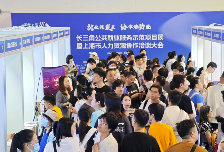 8月28日,长三角公共就业服务示范项目展暨上海市人力资源协作洽谈大会——“重点企业招聘会”在世博展览馆举行。