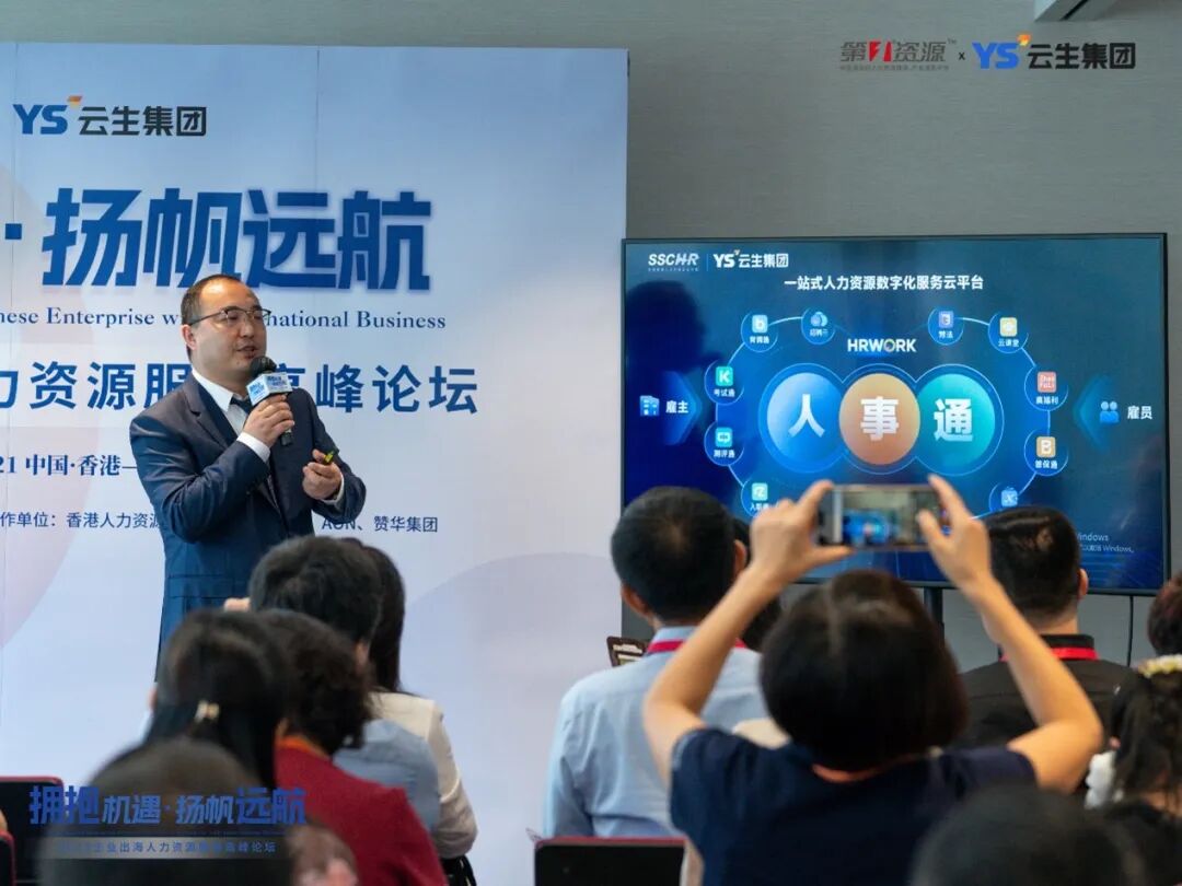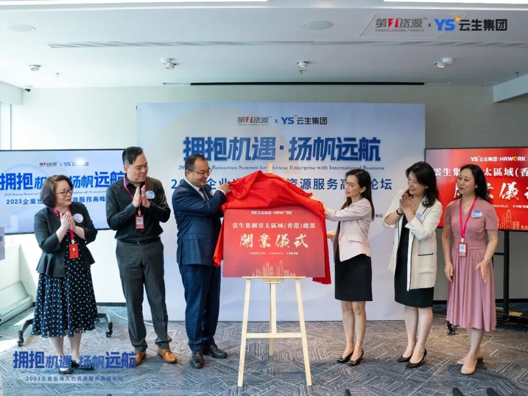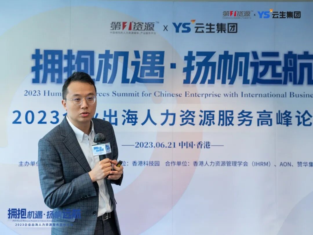 与此同时,云生集团亚太区域(香港)总部宣告成立,正式入驻香港科技园,活动现场举行了简短而隆重的开业仪式。云生集团创始人、CEO李贤威与第一资源创始人、董事长刘红,香港科技园策略发展高级顾问罗詠仪Jane Lo,广东省人力资源管理协会秘书长李颖锋,广东省人才交流协会副会长兼深圳代表处会长余晓梅,怡安亚太区咨询业务负责人 MAGGIE YOU共同为云生集团亚太区域(香港)总部揭幕。这是云生集团八年发展历程中具有战略意义的举措,云生集团亚太区域(香港)总部服务辐射港澳台地区,以及泰国、新加坡等国家,致力于为企业提供便利、高效、合规、稳定的人力资源科技服务。中国香港作为国际性商业、贸易及金融枢纽,也是全球金融中心,是众多境内企业“走出去”的第一站。云生集团创始人、李贤威表示:“在国家‘一带一路’建设推动下,云生集团成立亚太区域(香港)总部,并以此作为海外战略平台,意味着我们将坚定不移地实施国际化战略。中国企业出海并非一件易事,出海后会面临一系列人力资源管理问题,例如招人、用人、薪酬、个税、合规等,因此人力资源服务机构也要加大力度‘走出去’。云生集团亚太区域(香港)总部的成立,得到了香港科技园、广东省人力资源管理协会、广东省人才交流协会等粤港澳大湾区各方的大力支持,在云生集团发展进程中具有十分重要的意义。我们也对这里的营商环境充满信心,集团入驻中国香港后,将全力服务和融入中国香港经济发展的浪潮。”在以国内大循环为主体、国内国际双循环相互促进的新发展格局之下,云生集团坚定不移地走全球市场战略。2022年末,云生集团发布了出海易Chuhaiyi平台,正式将HRWORK的一体化服务从国内带向全球,专门解决中国企业出海用工问题,为客户在海外不同阶段的拓展提供人力布局,帮助中国企业更好地“走出去”。2023年,出海易Chuhaiyi 中国企业出海前瞻全国系列分享会如火如荼地在全国各大城市巡回举办,反响热烈。据了解,本次企业出海人力资源服务高峰论坛也是云生集团出海系列活动之一,为中国企业出海保驾护航。香港科技园业务发展经理周川 Patrick Zhou对香港科技园园区的政策进行了分享。
