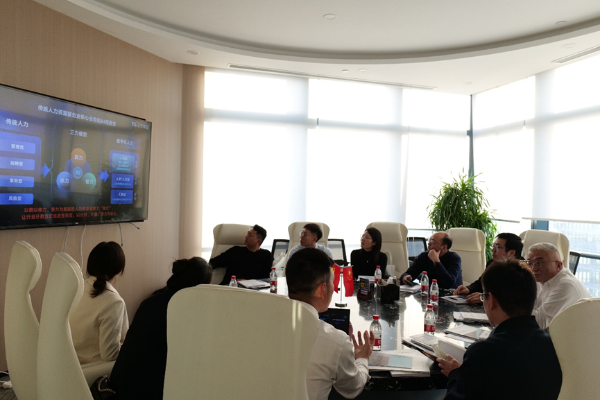 张建生带领参访团一行参观了云生集团总部办公室,并在座谈中详细介绍了云生集团的发展历程、市场规模、产品服务等情况。双方在座谈中就人才培养、组织发展、人力资源数智化等多方面话题进行了广泛探讨。