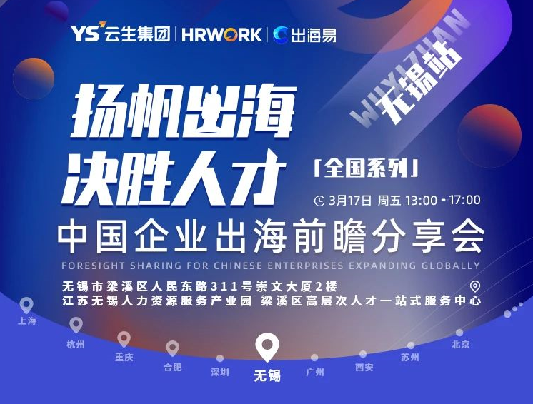 出海易Chuhaiyi 2023中国企业出海前瞻全国系列分享会将在中国10大万亿GDP级城市巡回举办,目前已在上海、杭州、重庆、合肥及无锡顺利落幕,每一站都力邀知名学者、企业高管、法律专家等嘉宾,通过具有代表性的案例分析、具有前瞻性的趋势判断等,为中国出海企业提高自身在海外的人力资源管理水平,改进人力资源管理中存在的问题,提高企业的经营效益,提供切实有效的帮助。