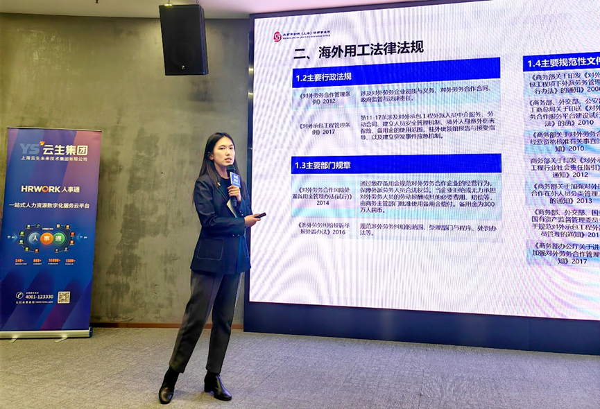 云生集团海外业务总监汪鸿雁首先带来主题分享《海外用工常见的风险与挑战》,她指出了中国企业“走出去”海外用工的十大风险与挑战,包括劳动法律环境、解雇风险、对外投资派遣用工模式、薪酬社保个税、外籍人员准入限制、当地工会力量、文化壁垒、职场歧视、员工假期管理和职业安全与人身健康。云生集团2023重磅推出出海易Chuhaiyi,为中国企业出海提供安全高效的一站式全球用工数字化人力资源解决方案,以上难点痛点都能由出海易帮助解决。出海易Chuhaiyi拥有成熟的数字化能力以及覆盖全球的服务网络GSSN,基于HRWORK云平台的统一界面和本地化语言操作,可在全球158个国家和地区,为客户海外人力资源管理进行数字化高效赋能。