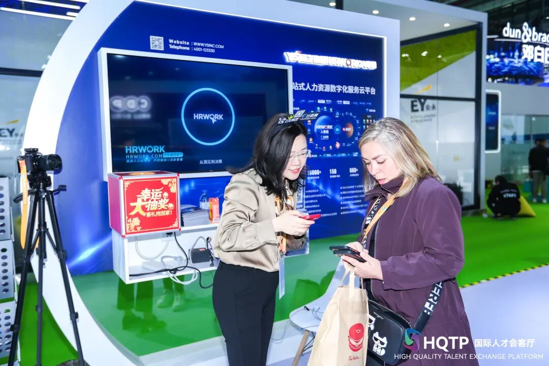 “HQTP国际人才会客厅”展区主题活动吸引了众多观众驻足聆听,并在现场展开咨询互动,云生集团的产品专家耐心解答各类咨询,与全球宾客热情交流行业发展。
