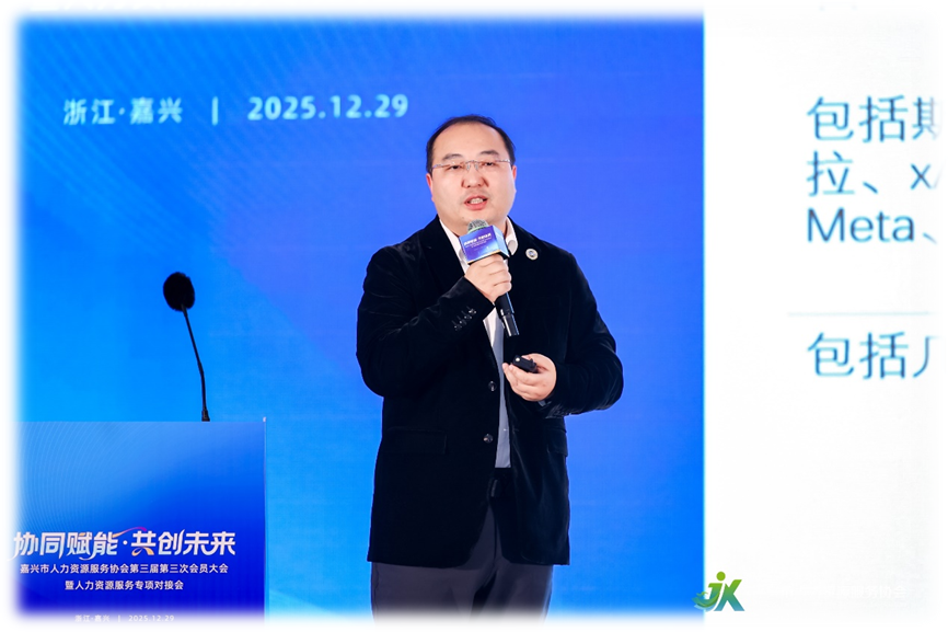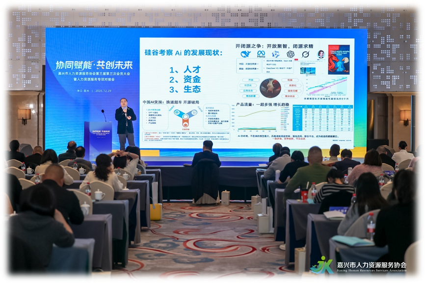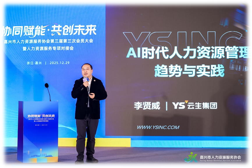 12月29日,嘉兴市人力资源服务协会第三届第三次会员大会暨人才专项对接活动成功举办。云生集团创始人、CEO李贤威受邀出席本次活动并发表主题分享,与嘉兴市人社领域政府代表、行业精英及企业负责人共探人力资源服务高质量发展路径,分享AI技术赋能人力资源行业的前沿实践与未来趋势。
