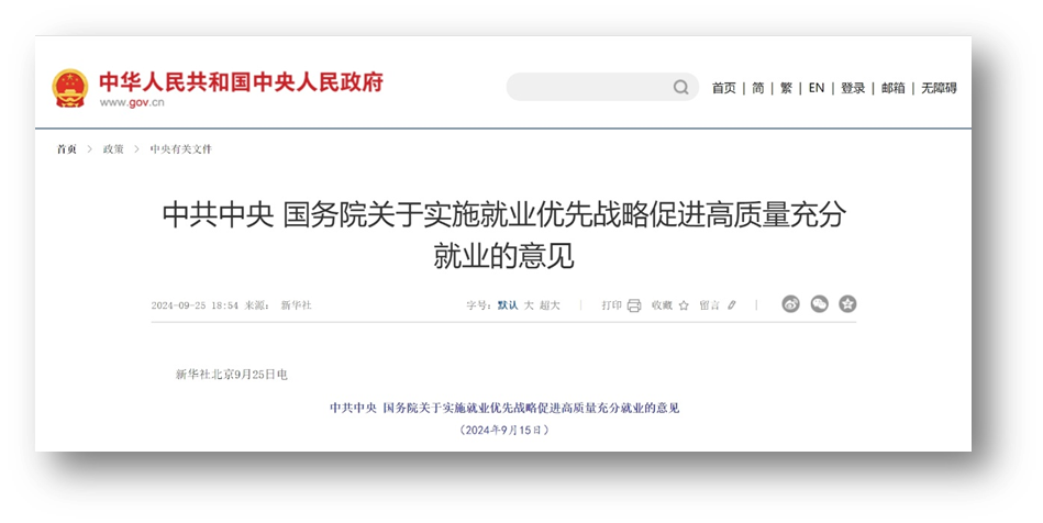 《中共中央 国务院关于实施就业优先战略促进高质量充分就业的意见》(下称《意见》)9月25日发布,部署24条举措,持续促进就业质的有效提升和量的合理增长。
