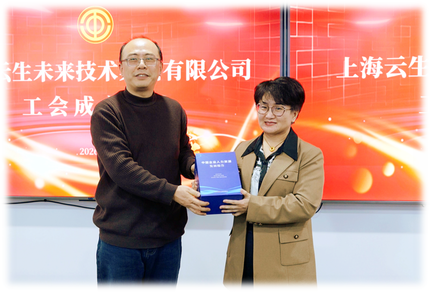 在全场热烈的掌声中,街道党工委副书记、工会主席顾炜与云生集团CHO刘碧林共同为云生集团工会揭牌,这一刻标志着云生集团工会正式宣告成立,开启了集团职工权益保障与企业文化建设的新篇章。