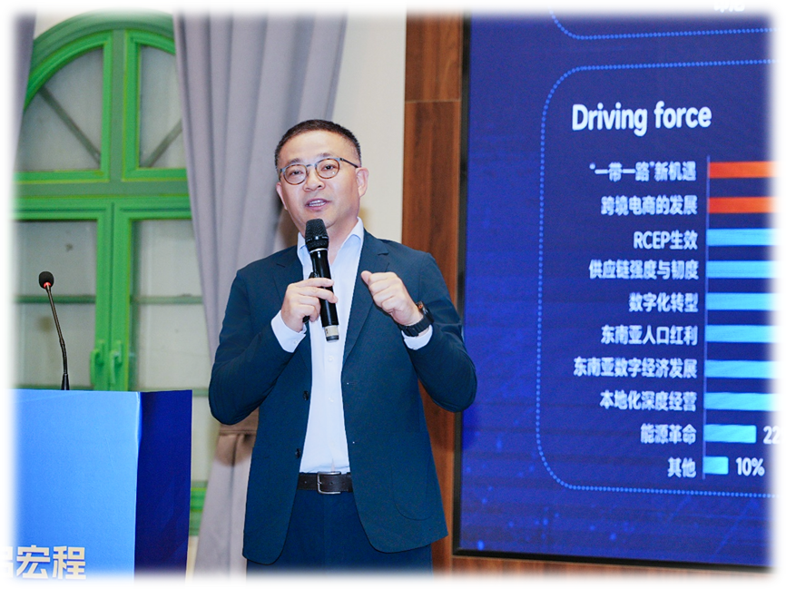 宁波银行南京分行国际业务部战略客户部高级经理贾帅指出当前三大中资出海新趋势分别是对外投资规模保持快速增长、多元化投资格局正在形成、民营企业对外投资持续活跃,同时她也指出中企出海的三大挑战分别是出海国家选择有困难、投资国家认知不全面、跨文化沟通存在障碍,随后介绍了宁波银行的“海外服务”一站式平台。