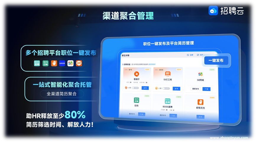 作为一站式AI招聘聚合管理云平台,招聘云自诞生之初便锚定企业招聘的核心痛点,以AI智能体服务为核心引擎,专为企业HR及招聘相关管理人员打造,致力于提供招聘全流程数字化、智能化解决方案。