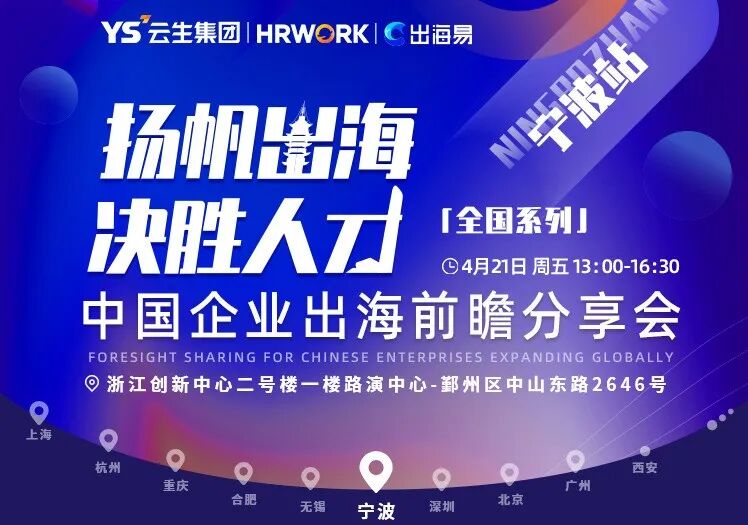 4月21日,由云生集团及旗下出海业务品牌“出海易Chuhaiyi” 主办,中国宁波人力资源服务产业园、浙江创新中心协办的“扬帆出海,决胜人才” 出海易Chuhaiyi 2023中国企业出海前瞻全国系列分享会宁波站圆满落幕。