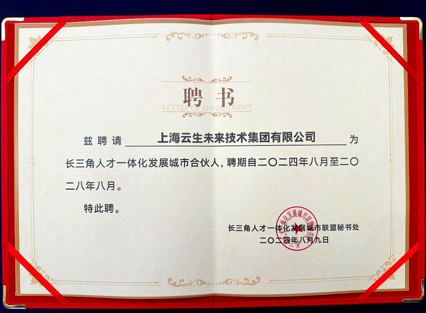 据了解,云生集团此次还被长三角人才一体化发展城市联盟聘为“长三角人才一体化发展城市合伙人”,未来将持续依托自身技术优势,为长三角地区人才一体化发展贡献力量。