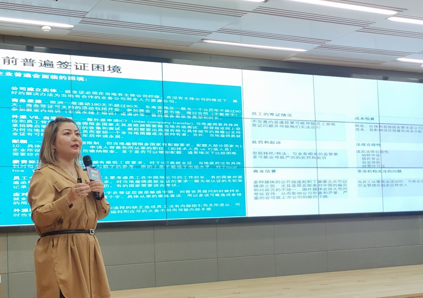 随后,云生集团海外业务总监汪鸿雁带来主题分享《海外用工常见的风险与挑战》,详解了中国企业“走出去”海外用工的十大风险与挑战,包括劳动法律环境、解雇风险、对外投资派遣用工模式、薪酬社保个税、外籍人员准入限制、当地工会力量、文化壁垒、职场歧视、员工假期管理和职业安全与人身健康。云生集团2023重磅推出HRWORK出海易,为中国企业出海提供安全高效的一站式全球用工数字化人力资源解决方案,以上难点痛点都能由出海易帮助解决。