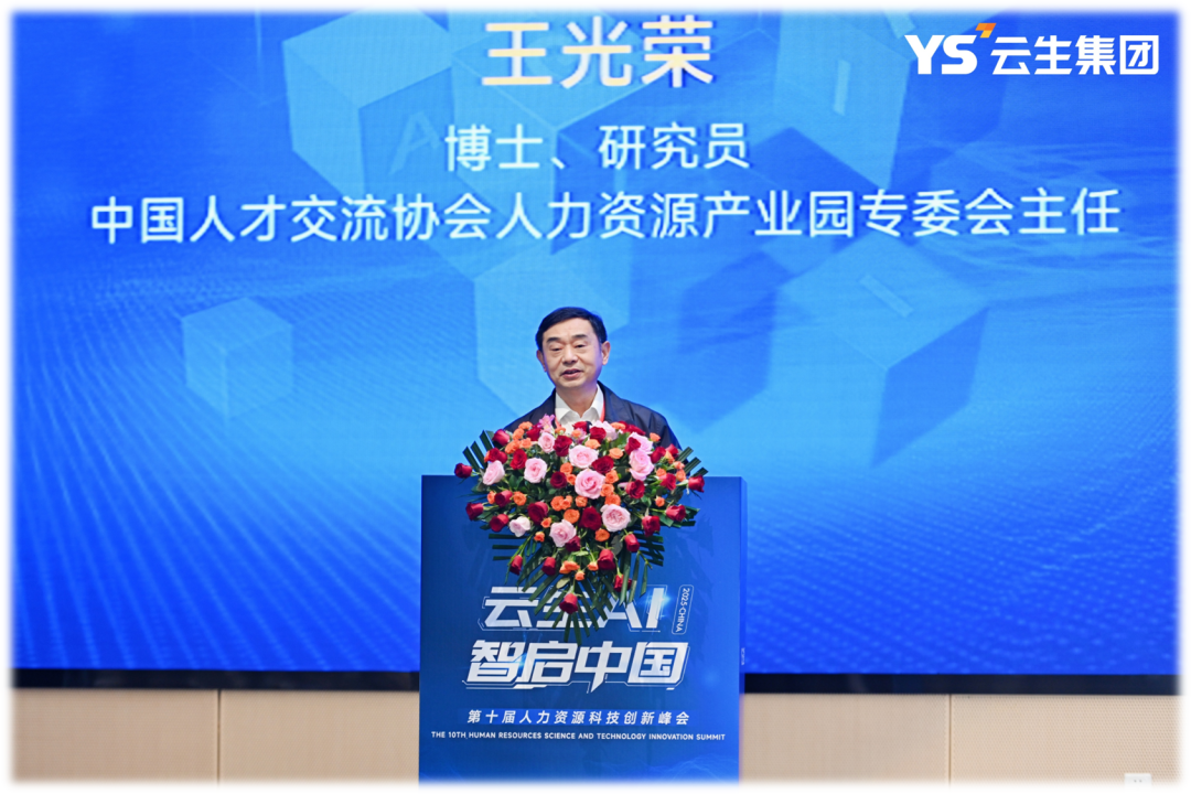 中国人才交流协会人力资源产业园专委会主任王光荣以《AI时代人力资源服务发展趋势与创新思路》为题带来主旨分享。他指出,人力资源服务业是朝阳产业,未来人力资源服务业发展的最大变量是AI,它将对行业带来颠覆性、系统性、持续性影响,人力资源从业者应正视AI对人力资源服务的机遇挑战。同时,王光荣向云生集团成立十周年表达了祝福,希望云生“服务+软件+智能体”的发展优势与时代同频共振,为行业树立标杆。