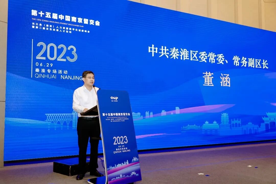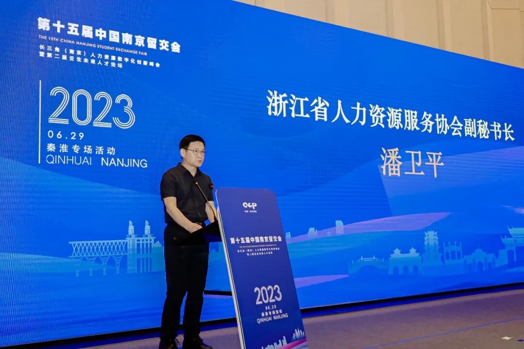 中共南京市秦淮区委常委、常务副区长董涵为活动致欢迎辞,浙江省人力资源服务协会副秘书长潘卫平致贺辞。
