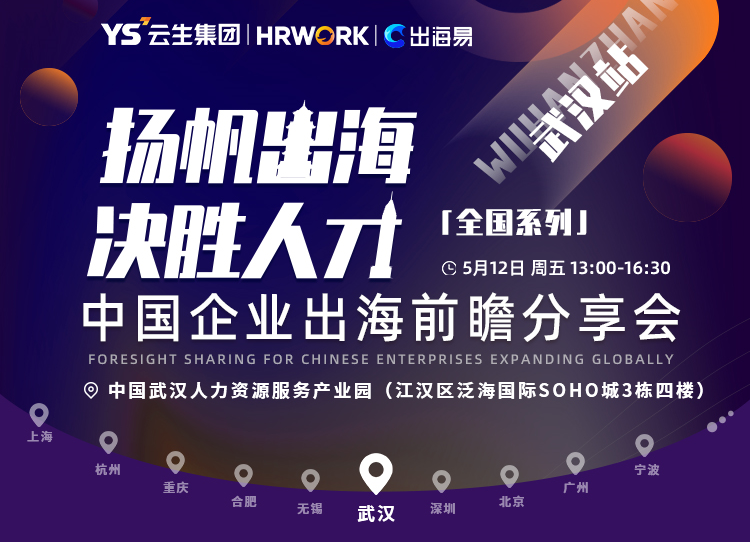 2023中国企业出海前瞻全国系列分享会仍在如火如荼地巡回举办中。5月第一场来到华中城市武汉,邀请到云生集团服务中心副总裁刘丰枝、云生集团海外业务总监汪鸿雁、安永人力资本全球派遣团队高级经理肖莎、湖北瑞通天元律师事务所崔凯,为在场来宾分享2023中国企业出海趋势、风险挑战及应对方案,继续助力中国企业“扬帆远航”。