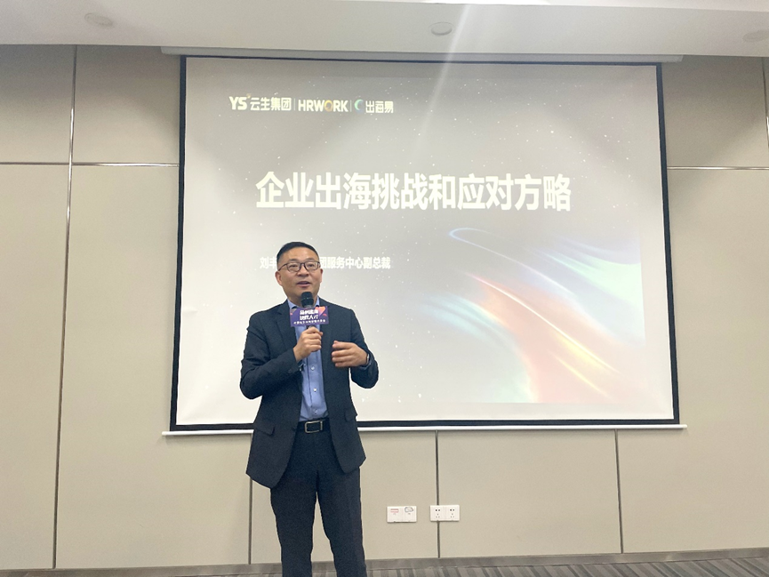 云生集团服务中心副总裁刘丰枝首先带来他的主题分享《企业出海挑战和应对方略》。刘丰枝以生动有趣的“讲故事”形式,结合自身20多年的海外从业经历,与大家分享了中国企业出海可能面临的机遇和挑战,精彩的案例给未来有出海需求的企业带去了更多的启示。同时,刘丰枝也积极鼓励中国的企业和企业家们勇敢“走出去”,去感受海外不同的商业环境,拥抱挑战,实现价值。