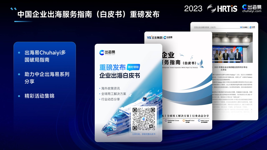 由云生集团主办的第八届中国人力资源科技创新峰会近日在上海圆满落幕,本次峰会主题为“驾驭AI·云生长”。(点击跳转)会上,云生集团海外业务事业部总监汪鸿雁带来《全球雇佣时代下的人力资源服务》的主题分享。汪鸿雁结合市场出海调研分析报告以及业务观察对中国出海全球化的挑战和机遇进行了全面的解读和分析,介绍了云生集团海外业务平台“出海易chuhaiyi.com”,并首次发布《中国企业出海服务指南》。