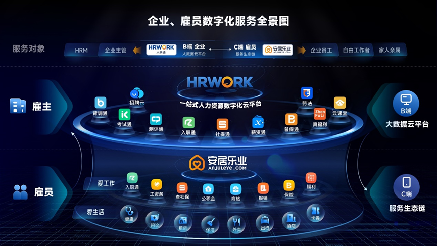 在这个项目中,云生集团基于AI大模型技术,全面赋能旗下各领域一站式数字化云平台——HRWORK人事通、职得干、LAOFA劳法、出海易chuhaiyi.com、好喔云、易搭云,以自动化方式替代人工,辅助企业HR处理量大繁琐、重复性高的人力资源管理工作,进而优化流程,提高效率和质量。对招聘、背调、入职、薪酬、五险一金、劳动关系等各个环节,机器人都能够参与并出色完成任务。