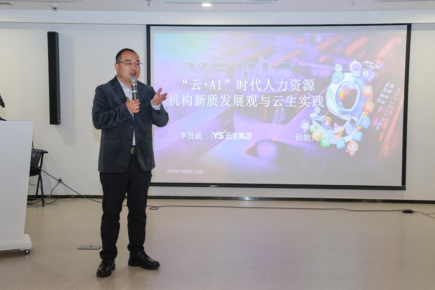 29日,中国人才交流协会副秘书长、云生集团创始人兼CEO李贤威出席了人力资源服务机构研讨会,并担任主旨分享嘉宾,分享了《“云+AI”时代人力资源机构新质发展观与云生实践》的主题演讲。