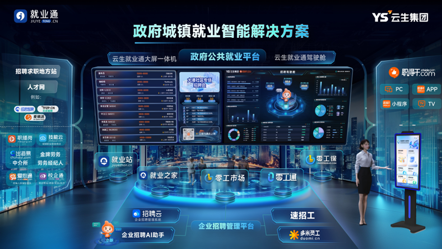 与此同时,云生集团在产品和服务创新上也积极响应国家稳就业、促就业的政策号召,打造核心平台“就业通”。“就业通”锚定“打破用人单位与求职者信息壁垒”的核心定位,致力于为各地搭建全维度的一站式公共就业服务解决方案,推动地方人力资源及人才服务体系实现全面升级。“就业通”平台深度融合AI技术,搭载云生AI数字员工,整合了多个云生AI Agent 包括人岗匹配智能体、岗位画像智能体、人才画像智能体等招聘智能体,让就业服务从“人工驱动”向“智能赋能”全面转型。