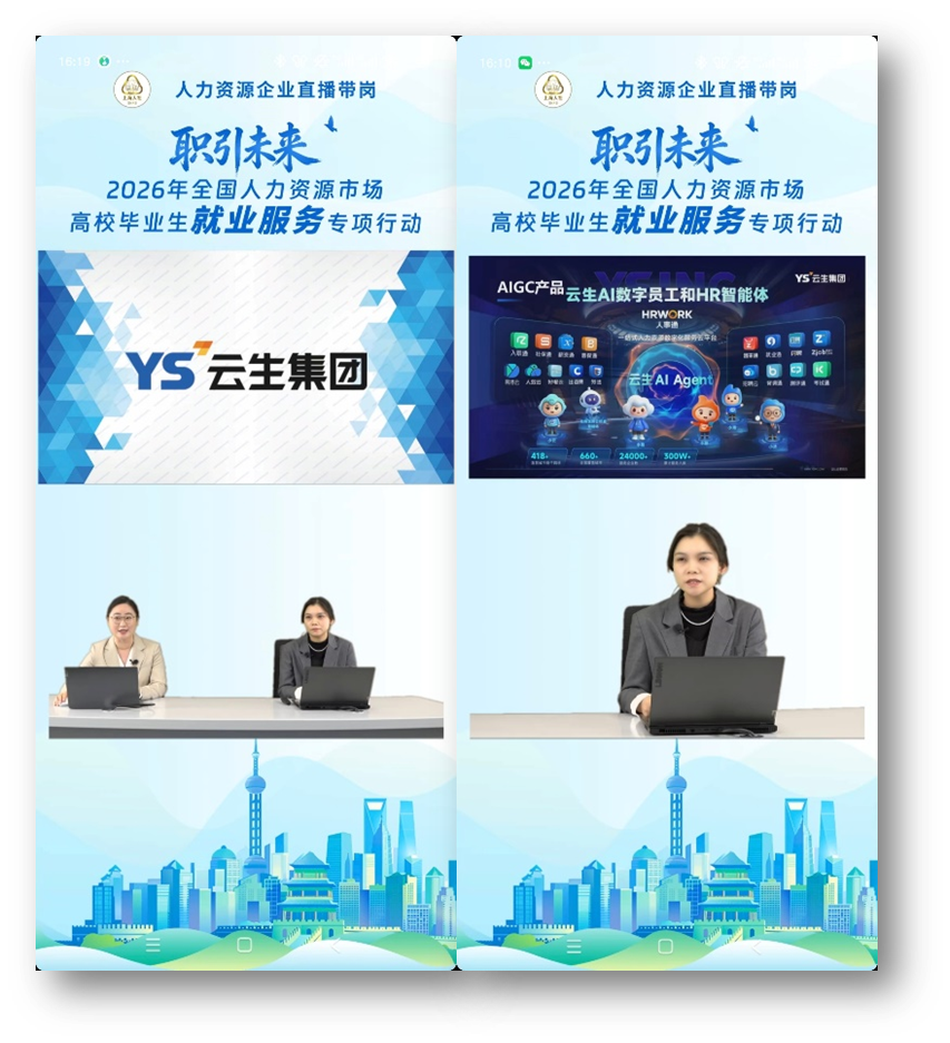 1月15日,云生集团受邀参与上海市人社局“职引未来——聚焦高校毕业生就业直播带岗活动”,继2025年后再次与市人社局携手搭建就业桥梁。