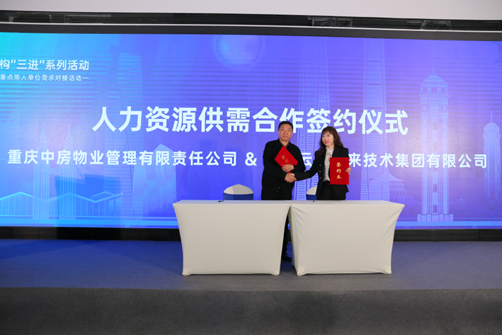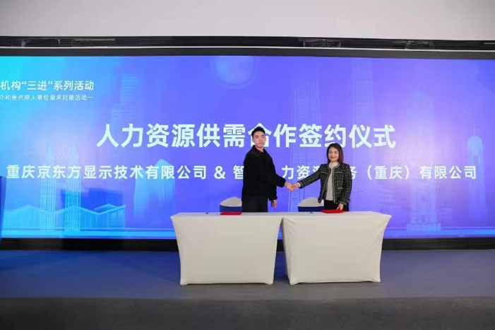 通过前期项目对接、现场供需洽谈,重点用人单位与人力资源服务机构深度合作项目共签约4项。其中,智服人力资源服务(重庆)有限公司与重庆京东方显示技术有限公司、云生集团与重庆中房物业管理有限责任公司分别达成合作意向,现场完成签约。