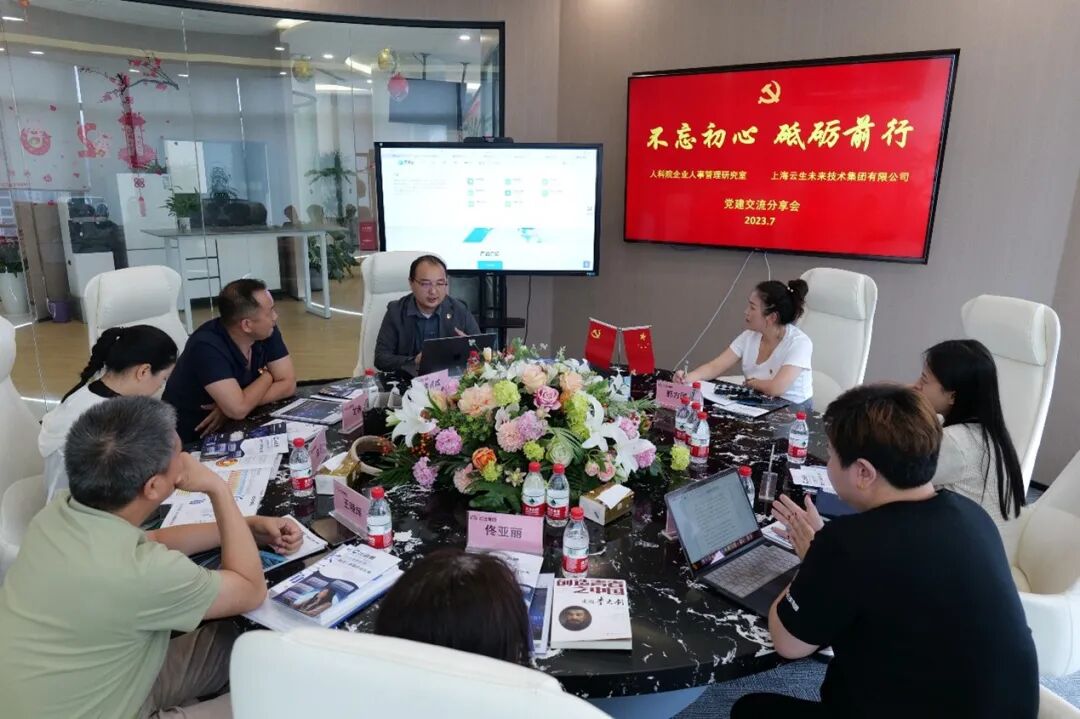 7月13日,云生集团党支部与中国人事科学研究院企业人事管理研究室在上海召开了“不忘初心,砥砺前行”党建交流分享会。中国人事科学研究院企业室主任、党小组长范巍,党小组王晓辉、佟亚丽、赵宁、曹婕等同志,云生集团党支部书记、创始人、CEO李贤威,党支部副书记瞿夏晶,市场总监张建生,以及云生集团各部门的党员代表出席活动。此次党建共建活动旨在凝聚党建合力,推动人科院企业人事管理研究室与云生集团之间资源共享,构建双向促进的党建工作新格局,携手打造优势互补、资源共享的共建共融新模式。云生集团党支部书记李贤威首先介绍了云生集团的发展情况及党组织建设工作,并汇报了2023年党建引领企业发展的新思路、新要求。李贤威指出,作为实现高质量发展的重要人才支撑,人力资源服务业已经成为现代服务业最具活力的行业之一,云生集团身处行业之中,更应积极主动地发挥党组织的坚强堡垒作用,通过学习相关文件和讲话精神,结合自身企业文化,及时发现日常服务工作中的不足之处,集思广益找到解决问题的方式和方法。李贤威强调,企业要保持自身发展,更不能忘记回馈社会,党支部要带头关注和参与公益活动,勇于承担起企业社会责任。