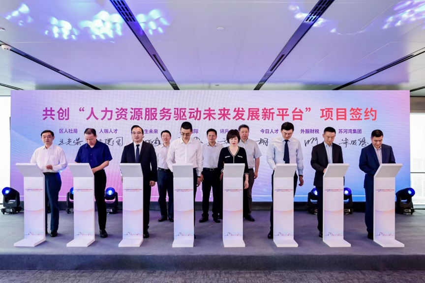 8月18日是中国人力资源日。上午,“重振经济,汇聚人才,稳定就业——人力资源服务驱动未来发展新平台启动暨静安区人力资源服务业重点项目签约活动”在上海静安区苏河湾中心举办。静安区委副书记、区长王华,上海市人社局副局长叶霖霖出席活动,并共同启动了人力资源服务驱动未来发展新平台。静安区委常委、常务副区长傅俊主持活动。