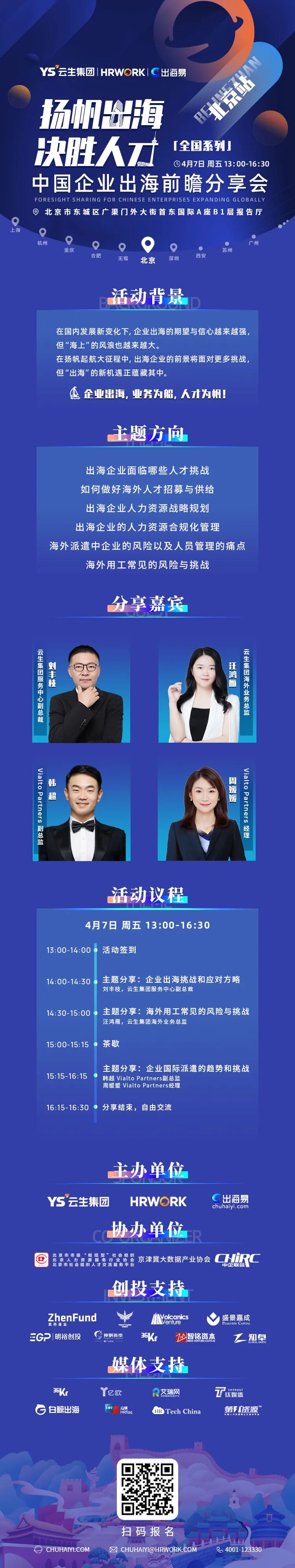 扬帆出海,决胜人才 | 4月7日北京站中国企业出海前瞻分享会