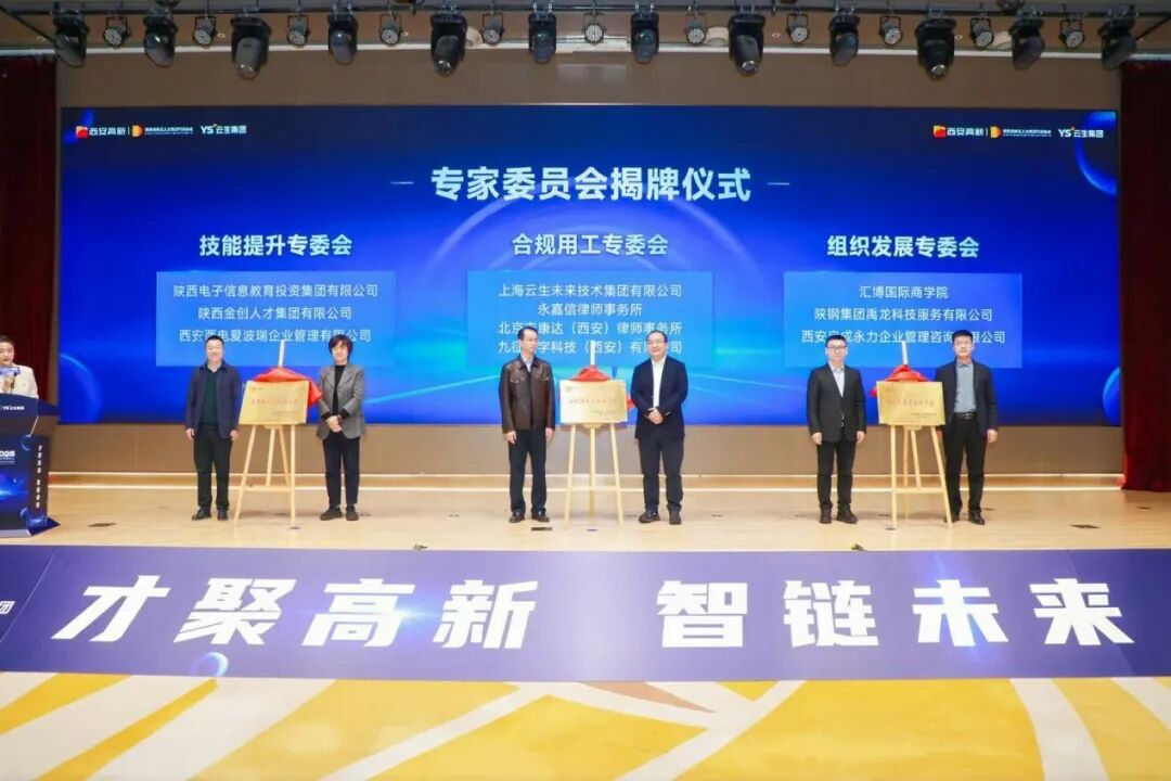 高新区党工委组织人事部相关负责人介绍了西安高新区近年来蓬勃的发展势头和健全的产业布局,对人力资源行业协会在推动行业规范发展、搭建企业与人才对接桥梁、助力区域人力资源优化配置等方面工作给予了充分肯定,并指出2025年是携手共赢、协同发展的一年,人力资源行业更应该积极应对、凝聚共识,为地方经济持续回升向好做出新的、更大的贡献。会上,协会秘书处作2024年度工作报告。以“强化自律建设、深化会员服务、推动高质量就业、促进数字化建设”四大主题为主线,全景式回顾了协会2024一年以来的辛勤工作与取得的成果。通过细数奋斗与收获交织的珍贵瞬间,展现了协会在2024年勇挑重任、创新探索的角色担当,彰显了协会在推动行业发展、搭建资源平台、提升服务质量的坚定使命,助力保民生稳就业大局中的坚定担当。协会成立技能提升专委会、合规用工专委会、组织发展专委会,行业主管部门领导为专委会揭牌。据了解,西安高新区人力资源行业协会专委会旨在聚焦行业细分领域,促进企业合规经营,搭建高水平的职业技能培训平台,为企业构建多元化的人才培养体系,利用专委会的组织优势、资源优势、专家优势,促进区内人力资源领域标准化、专业化、生态化发展。其中,合规用工专委会由云生集团、永嘉信律师事务所、康达(西安)律师事务所、九征数字科技等会员单位发起成立,旨在为企业提供专业化咨询服务,推进合规信息化管理手段,促进企业合规经营。云生集团创始人、CEO李贤威作为企业代表参加揭牌仪式。