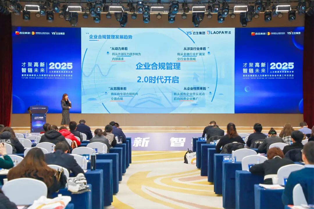 最后,龚霞发布了《年度人力合规指引分析报告》,并站在企业合规管理的角度分享了人力合规的数智化未来。据龚霞介绍,《年度人力合规指引分析报告》分为《全国篇》和《行业篇》两册,《全国篇》选取了1124件劳动争议典型案例进行全面、科学、数据化分析,提炼了劳动争议案件的发展趋势,提出一系列切实可行的用工合规指引,助企纾困解难;《行业篇》则基于《全国篇》的宏观视角,深度聚焦金融行业与专精特新企业两大领域。活动中还举行了2024年度智慧人力价值企业(个人)评选颁奖仪式,本年度分别评选出“年度人力资源合规典范企业荣誉奖”、“数智人力变革先锋实践奖”、“年度人力资源管理智慧价值奖”、“年度和谐用工关系典范奖”、“智慧人力资源管理年度杰出人物”五项大奖。至此,2025年人力资源未来趋势分享暨西安高新区人力资源行业协会年度工作交流会圆满落幕。作为具有一定社会影响力的人力资源行业领跑企业,云生集团坚持以“AI+人力资源”为企业发展战略,以“让社会更高效”为企业使命,为全球企业和雇员提供高效便捷的AI+数字化系统和人力资源外包服务。站在新十年的道路上,云生集团将持续以赤诚之心,务实笃行,洞悉人力资源行业发展新趋势,深耕人力资源数智化,集聚全球资源,创新人力资源服务模式和手段,推动人力资源服务业的转型升级发展,持续为客户提供更加智能、高效的人力资源服务。