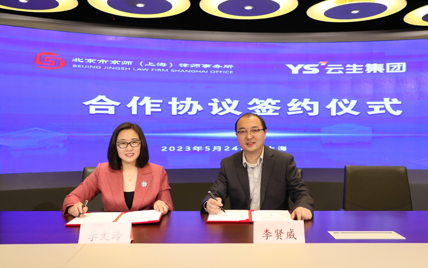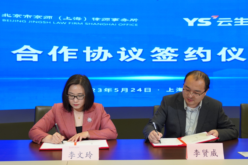 京师上海高级合伙人李文玲,云生集团创始人、CEO李贤威代表双方完成签约。