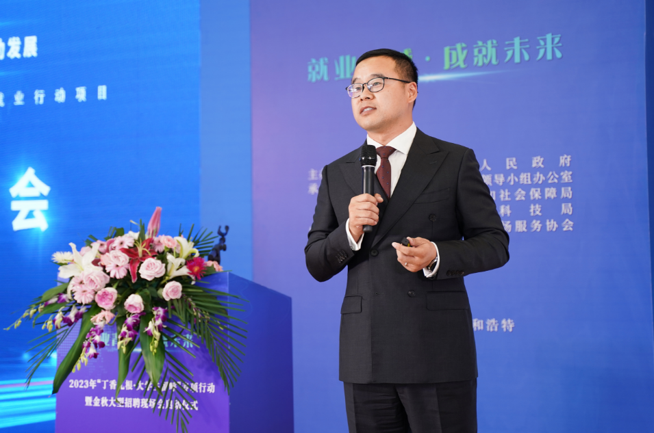 8月13日,以“就业青城 成就未来”为主题的2023年“丁香扎根·大学生留呼”专项行动暨金秋大型招聘现场会启动仪式在呼和浩特人力资源服务产业园举办。呼和浩特市委副书记、市长贺海东出席并致辞。本次活动由内蒙古呼和浩特市人民政府主办,呼和浩特市委人才工作领导小组办公室、呼和浩特市人社局、呼和浩特市科学技术局承办,呼和浩特市人力资源市场服务协会协办。上午,贺海东率队来到招聘会企业展位,与企业负责人深入交流,听取企业在呼市业务开展情况。云生集团创始人、CEO李贤威向领导一行介绍了云生集团的发展历程、技术实力、旗下一站式人力资源数字化平台及数字招聘机器人等AI产品。下午,“数字赋能促就业